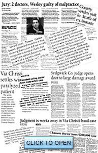 In the boxes below are news clippings from cases I've handled. Some of my clients have recovered millions. My last big case settled for $2.6 million, but in most cases a multi-million dollar recovery is not legally possible.